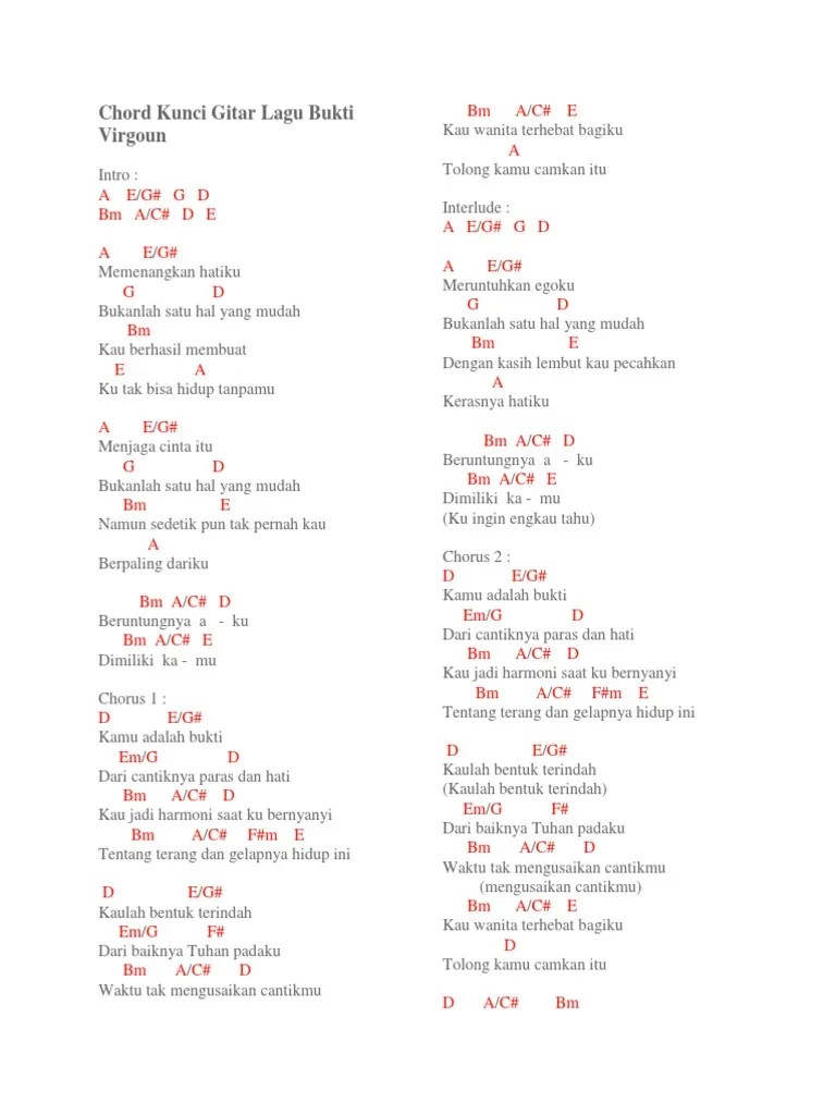 Berikut ini kunci gitar virgoun bukti yang dapat dimainkan dengan mudah.